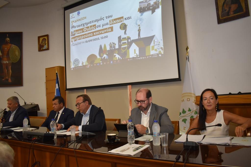 Με μεγάλη επιτυχία πραγματοποιήθηκε η εκδήλωση του Δήμου Φυλής με τίτλο «Μετασχηματισμός του Δήμου Φυλής σε μια δίκαιη και ευημερούσα κοινωνία», την Παρασκευή 15/09/2023, στο πλαίσιο των παράλληλων εκδηλώσεων της 21ης Ευρωπαϊκής Εβδομάδας Περιφερειών και Πόλεων (European Week Of Regions and cities 2023).